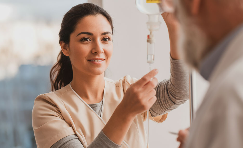 Administramos el suero de forma segura con monitoreo constante durante todo el proceso.